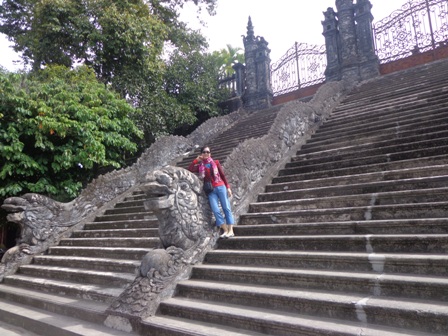 Bốn trụ biểu và các bậc thang dẫn lên chùa Thiên Mụ